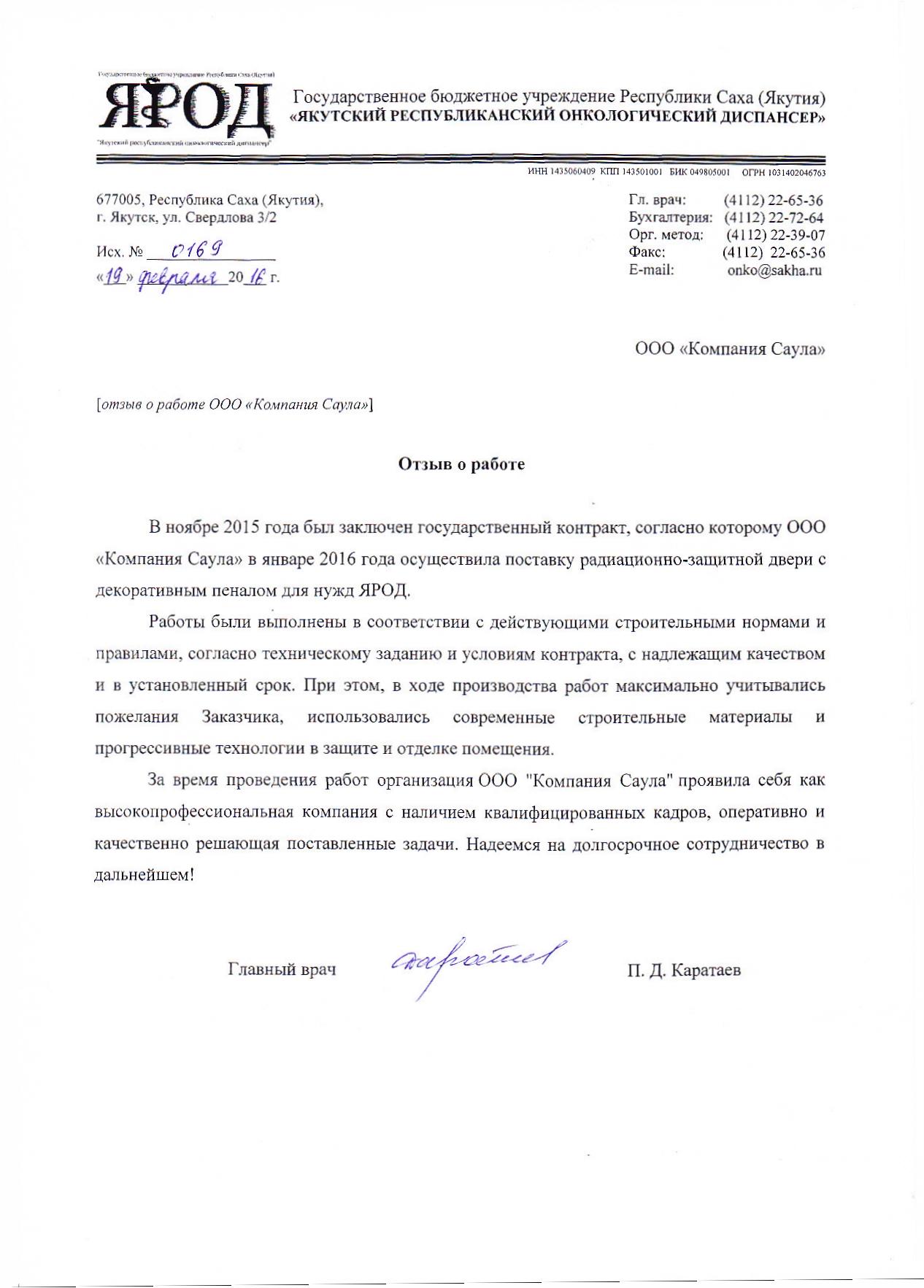 ГБУ РС(Я) «Якутский республиканский онкологический диспансер»Объект: ГБУ РС(Я) "Якутский республиканский онкологический диспансер"