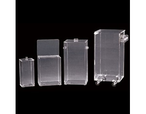 Контейнер изготовлен из прозрачного акрилового стекла, с прикрепленной на петлях герметичной крышкой.