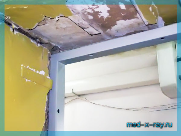 Наличник рентгенозащитной двери, также имеющий слой свинцовой защиты, закрывает собой все полости, образованные из-за снятого старого слоя штукатурки и остальных неровностей проема.