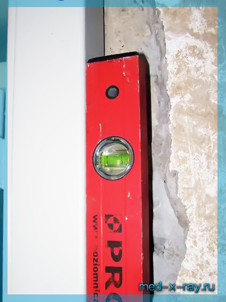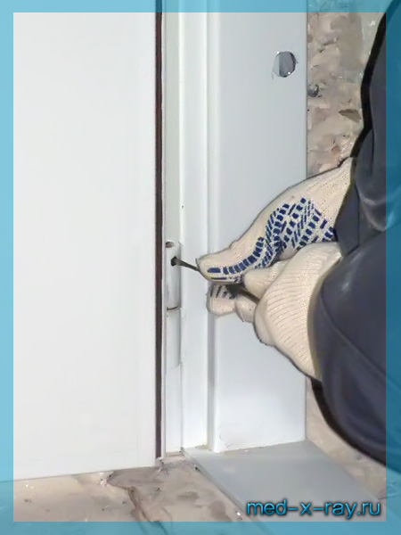 ► Перед закреплением коробки рентгенозащитной двери в проеме производятся тщательные замеры , поскольку неправильно закрепленная коробка двери приводит к выходу из строя запирающих устройств и, в конечном итоге, заклиниванию полотна двери в коробке.