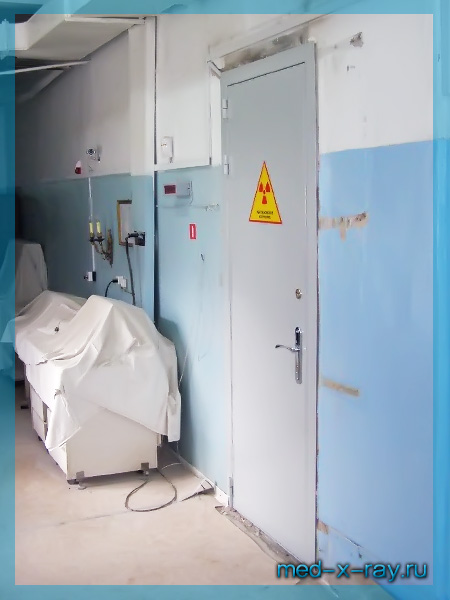 ► Так выглядит установленная однопольная рентгенозащитная дверь в радиологическом отделении Смоленской областной клинической больницы г. Смоленска.